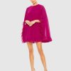 Mac Duggal Best Sellers | High Neck Ruffle Hem Cape Mini Dress Deep Green Women