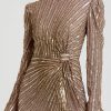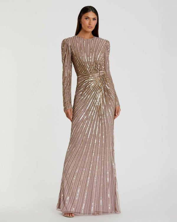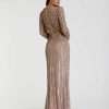 Mac Duggal Best Sellers | Light Brown Embellished Puff Sleeve Side Knot Gown Mocha Women