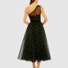 Perfect for any cocktail party, this gorgeous dress features pearl embellishments, a one shoulder neckline, and a flattering belted waist.