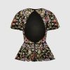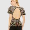 Presenting the ideal blend of class and mystique, Mac Duggal’s Floral Hand Beaded Chiffon Peplum Top features a serenely designed high neckline and flattering short flutter sleeve with a sexy open back. This piece is perfect for a cocktail party, evening out or a holiday party. Pair it with a full chiffon or satin skirt, a pencil skirt, sequin pants or black trousers.