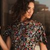 - Floral hand-beaded chiffon fabric (100% polyester)