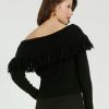 Stay cozy and stylish with our Off The Shoulder Fringe Knit Sweater. This unique sweater features an off-the-shoulder design and playful fringe detailing, perfect for adding a touch of bohemian flair to your wardrobe. Ideal for casual outings or a night out, it combines comfort with chic style.