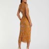 Chic sleeveless midi dress embellished with stripe-patterned sequins and beading.
