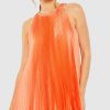 Mac Duggal Cocktail Dresses | Orange Pleated Halter Neck Flowy Mini Trapeze Dress Tangerine Women