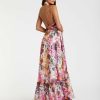 Our Asymmetrical Ruffled Halter Floral Gown—a beautiful option for your special events. This gown features a halter neckline and flowing ruffles, perfect for spring or summer.