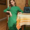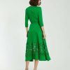 Mac Duggal Daytime Dresses | Crepe Boat Neck Midi Dress With Applique Cut Out Spring Green Women
