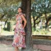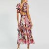 Mac Duggal Daytime Dresses | Ruffle Tiered Cut-Out Floral Chiffon Dress White Multi Women