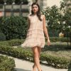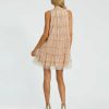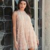 Intricate beading adorns this dress, adding a touch of glamour to any occasion. With its high neckline and ruffle detailing, it exudes elegance and femininity. Whether it’s a formal event or a cocktail party, this dress ensures you’ll make a striking impression.