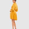 Chic long-sleeved wrap dress with a shawl lapel and flirty pleated hi-low skirt.