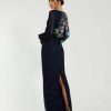 Adorned with intricate embellishments and a vibrant floral pattern, this gown exudes elegance and charm. The high neckline adds sophistication, while the multi-color design brings vibrancy and life to the ensemble.
