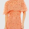 - Hand-embellished mesh overlay fabric; 100% polyester lining