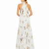 Mac Duggal Evening Gowns | Floral Print Ruched Tiered High Neck Bow Gown White Multi Women