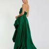 Introducing our Strapless Ruched High Low Gown, a captivating blend of modern style and classic elegance. Crafted from luxurious satin fabric with a fully lined bodice and skirt, this gown features a chic strapless neckline and sleeveless design. With its dramatic asymmetrical high-low hemline, it promises to make a statement at any event.