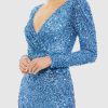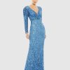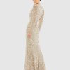 Mac Duggal Evening Gowns | Puff Shoulder Sequined Surplice Gown Shimmering Gold Women