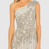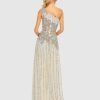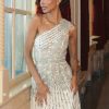 Our beaded one shoulder gown is a captivating blend of elegance and glamor. Featuring hand-embellished detailing, an asymmetrical neckline, and a flattering a-line silhouette, this gown is sure to make a statement wherever you go.