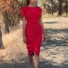 Introducing our Crepe Boat Neck Midi Tulip Dress With Belt, a perfect blend of elegance and sophistication. This dress features a chic boat neckline and a flattering tulip silhouette, complemented by a stylish belt that cinches the waist for a refined look.