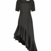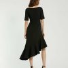 Step out in style with our Crepe 3/4 Sleeve Asymmetrical Hem Dress. Featuring a unique asymmetrical hem and versatile 3/4 sleeves, this dress offers a modern, flattering fit. Perfect for both casual and formal occasions.