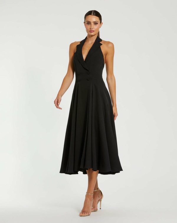 Mac Duggal Every Day Dresses | Crepe Sleeveless Blazer Halter Midi Dress Black Women