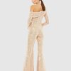 This statement-making jumpsuit is everything! Covered in petite, high-wattage sequins, the body-skimming jumpsuit is styled with a gorgeous pleated collar that slips off the shoulder, long sleeves, and bell-bottom legs. Just add simple heels and let the ravishing one-piece do the talking.