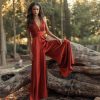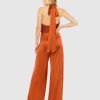 Mac Duggal Jumpsuits & Rompers | Orange Ruched Halter Top Wide Leg Satin Jumpsuit Rust Women