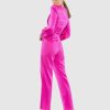 Chic long-sleeved jumpsuit in silky satin charmeuse completed with a plunging neckline, puffed sleeves, and ruching at the waist.