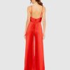 Fully-pleated wide leg jumpsuit with functional pockets, crafted from a beautiful silky charmeuse fabric.