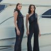 A fashion-forward alternative to a party dress, this one-and-done jumpsuit is the perfect way to mix up your evening attire. The jumpsuit is designed with a sequin-covered one-shoulder bodice, retro bell-bottom pants, and a slender set-on waistband that pulls the piece together. A sophisticated way to sparkle all night long.