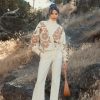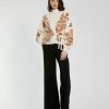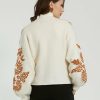 Mac Duggal Knitwear | Cropped Knit Cardigan With Floral Details Ecru Women