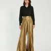 Mac Duggal Pants | Metallic Lamé Pleated Wide Leg Pant Gold Women
