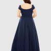 This elegant ball gown features a flattering square neckline and short sleeves, made with crepe fabric for a luxurious feel. This dress is perfect for any formal occasion.