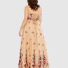 - Butterfly/Floral Appliqué Detail along Bodice & Hem