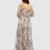 - Partially lined bodice; fully lined through skirt; sheer unlined sleeves