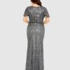 - Sequined lace mesh overlay; 100% polyester lining