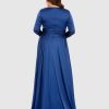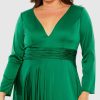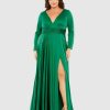 Mac Duggal Plus Size Dresses | Quarter Sleeve V Neck A Line Gown Emerald Women