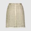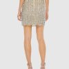 Our Hand Beaded Mini Skirt pairs wonderfully with a fitted top, whether it’s a blouse or a crop top. Better yet- you can pair it with our very own Crystal Embellished Soft Tie Cami Top. Finish the look with your favorite heels or ankle boots for a versatile outfit perfect for a night out or special occasions.