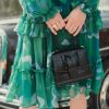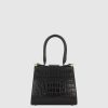 Mac Duggal Top Handle Bags | Buckled Mini Croco Black Leather Handbag With Detachable Strap Black Women